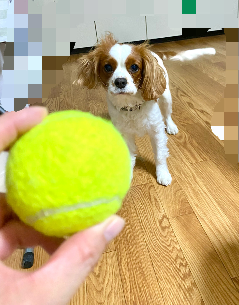 咥えたボールを私の前でぽとりと落とすナルちゃん。賢いです👏