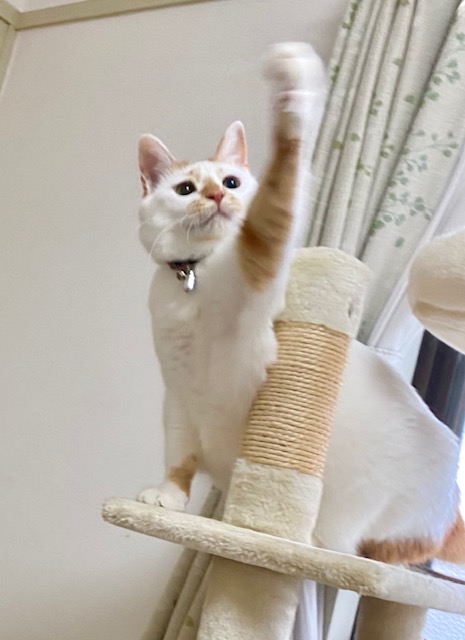 じゃらし遊びにも乗ってきてくれ、お目々がクリクリで真剣です😁猫ちゃんのこういう姿は特に可愛いです❤