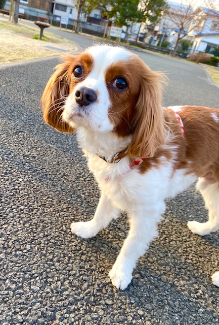 お散歩中きちんとアイコンタクトを取ってくれるナルちゃん。私のことを気遣ってくれて本当に賢い子です😊