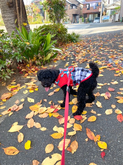 落ち葉の上を楽しそうに歩いていたとろろちゃん🍂