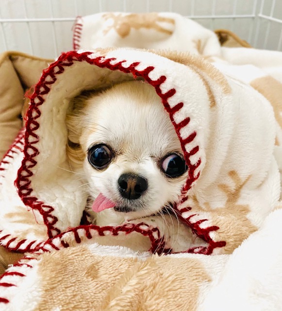 寒い時期だったのでブランケットを被ってぬいぐるみのような可愛さです😭😭😭💕